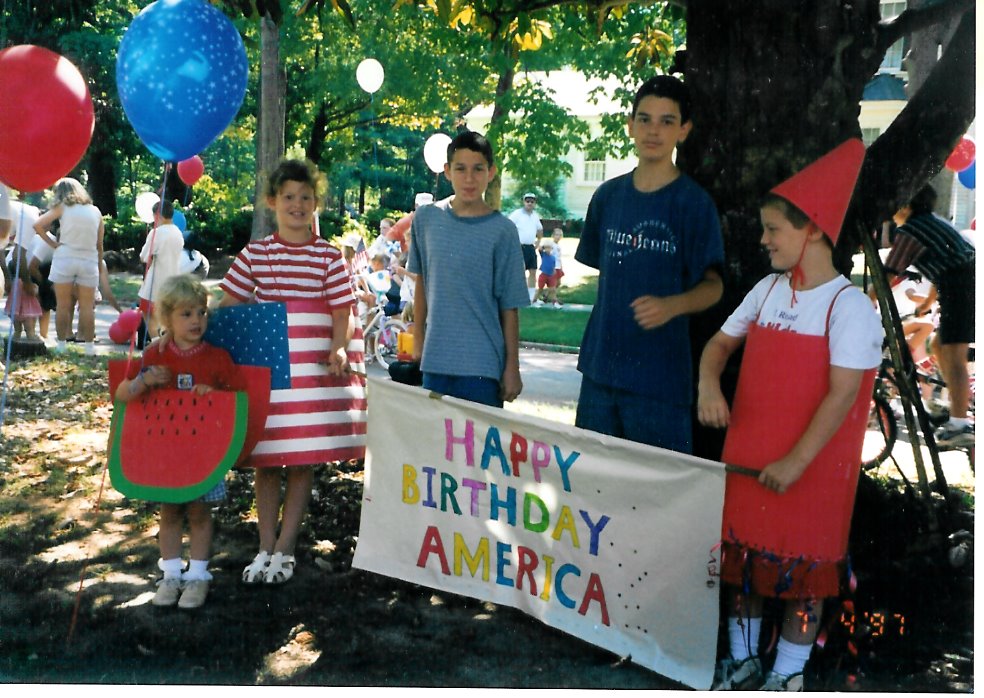 39. I love this little town we live in. There is a big Independence Day celebration tonight, with live music, skydivers, concessions, and fireworks, and then tomorrow is the Children's Parade, where kids decorate their bikes and wagons in red, white, and blue and walk up and down N.Main Street, then head over to the town park for sack races, water balloon toss, tug of war, and crafts.